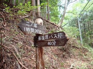 帰りは菩提原のバス停まで歩いた。停留所にいた地元の女性がザック姿のわたしたちを見て、この辺でもクマが出ているので気をつけるようにとのこと。長年住んでいるけれど去年くらいから山麓の住宅地にも出始めたのだそう。山に食べ物がなくて遠くから麓に降りてきたのだろうか。各地で同じようなニュースがしきりでクマも苦労してるのかなあ。