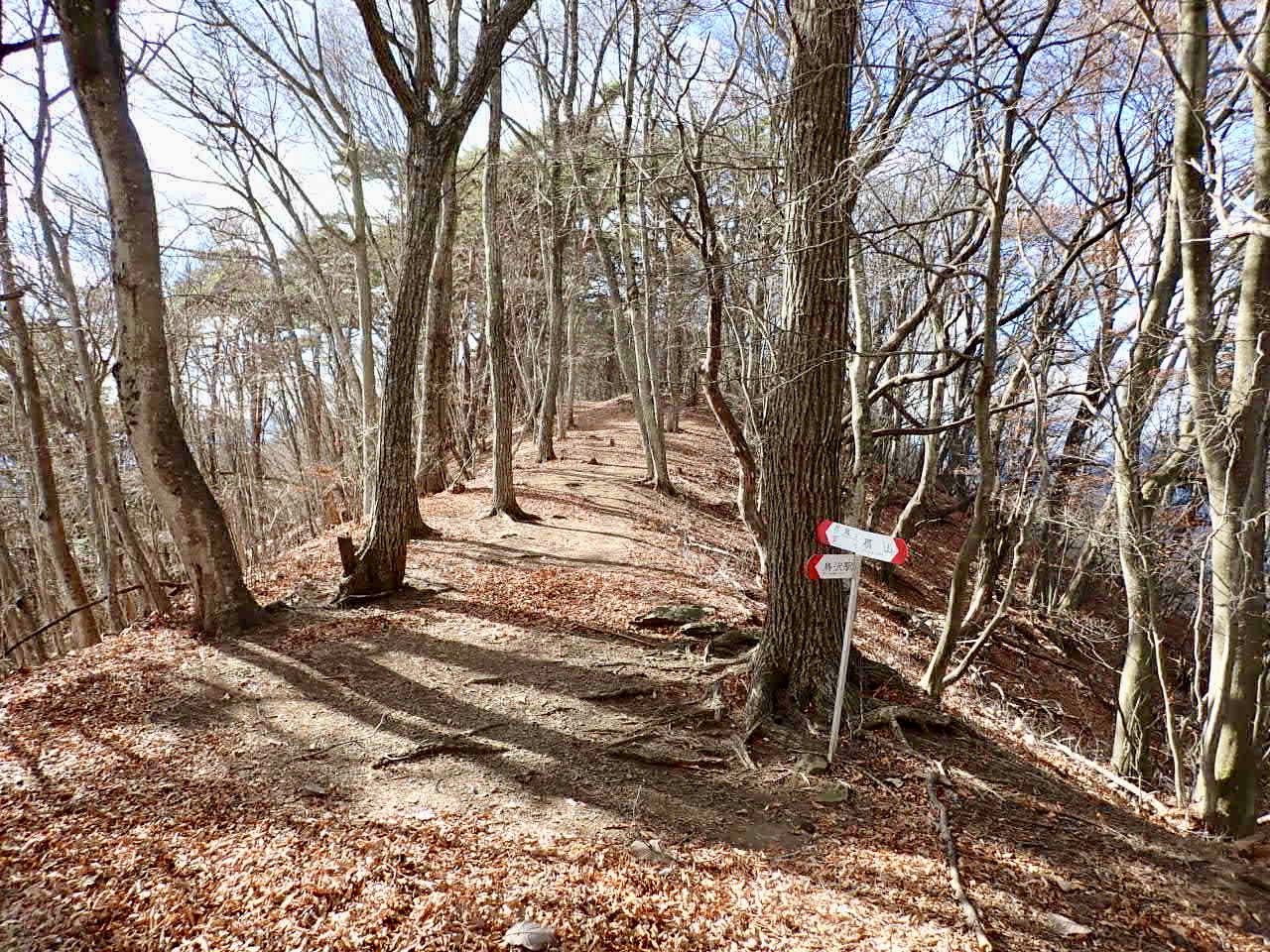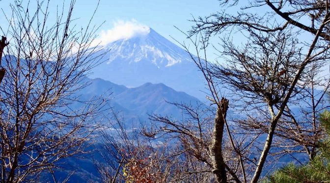 ならば駅から登って駅へ下れる富士秀嶽十二景の山を繋いでみましょうかと出かけた。百蔵山まではよかったけれど、ここから落ち葉ラッセルの激下りが続いた。最近はほんとに下りがさらに苦手になっていて困ったもの。