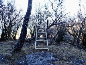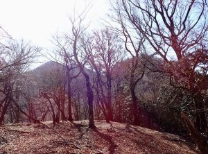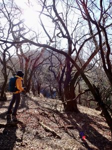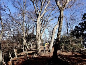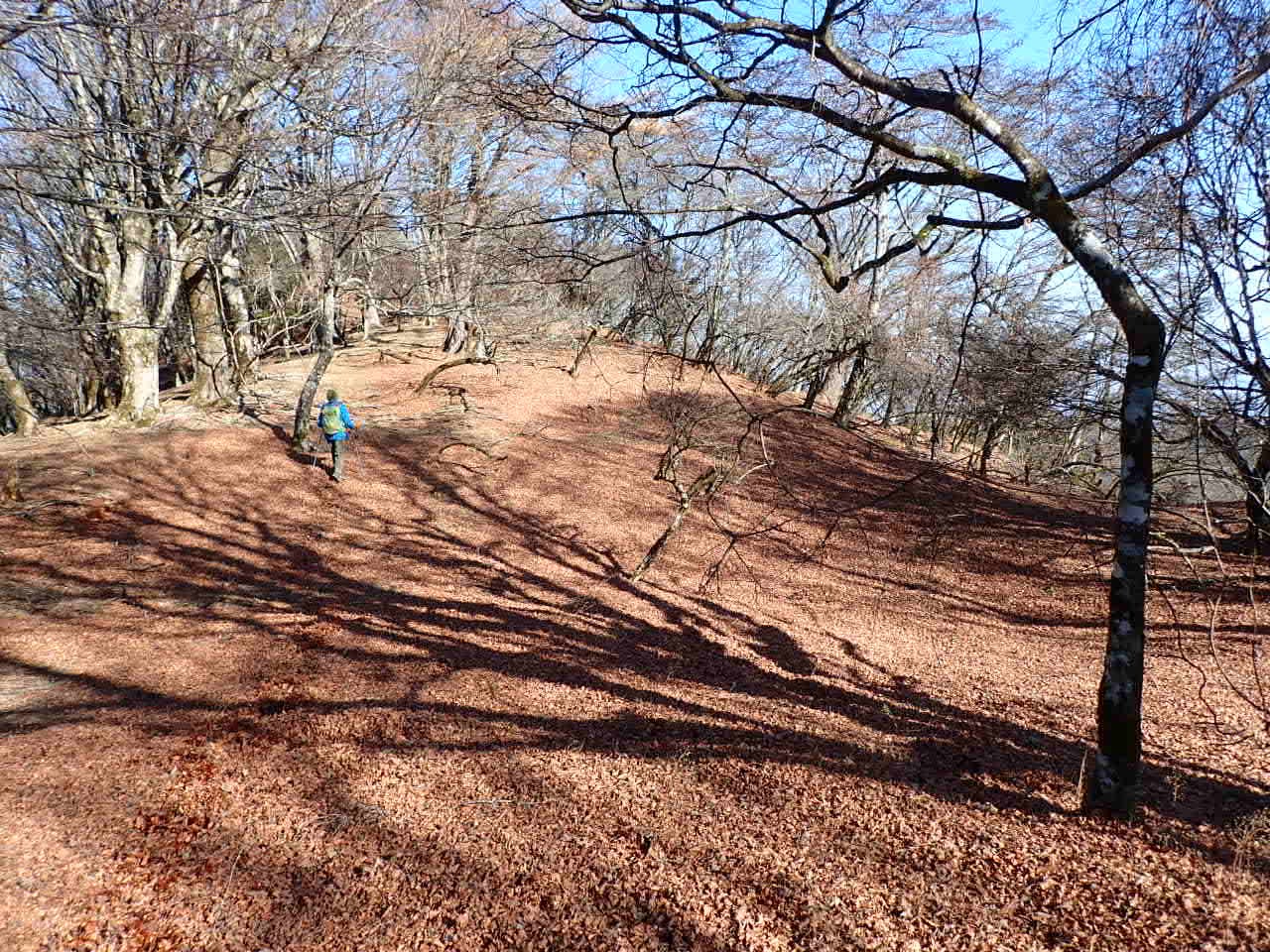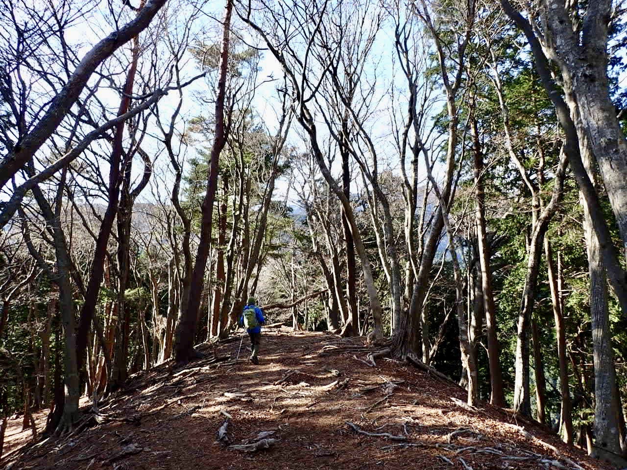 大山山頂北側の金網を鉄梯で乗り越えると誰もいない別世界となる。やっぱり静かな山歩きができる山はいいなあ〜と言いながら陽だまりハイキング。